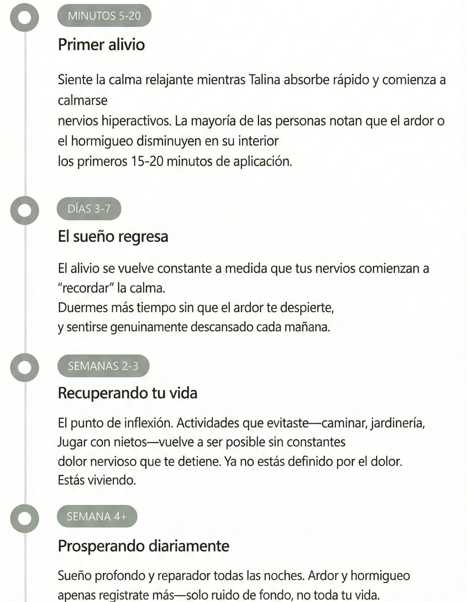 Primi giorni: molte persone avvertono un sollievo iniziale entro pochi minuti, poiché la lozione inizia a calmare i nervi iperattivi e ad alleviare il fastidio.
